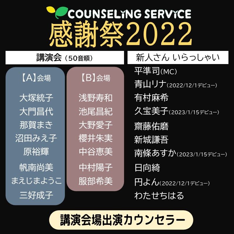 12月4日(日)『カウンセリングサービス感謝祭2022』が開催されます。