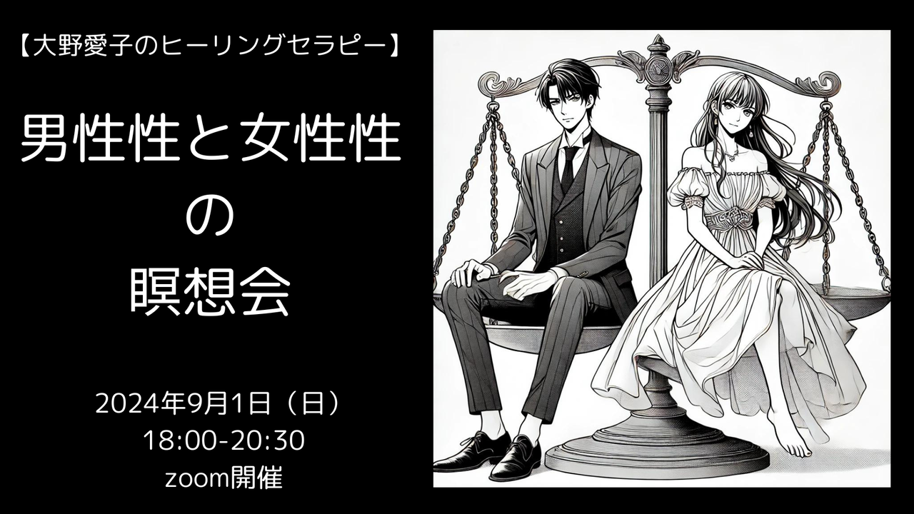 9月1日(日)に『男性性と女性性の瞑想会』を開催します。タイトルだけ見ると怪しく感じるかもしれませんが、心理学と瞑想(セラピー)を組み合わせたわりと硬派なワークショップです。
