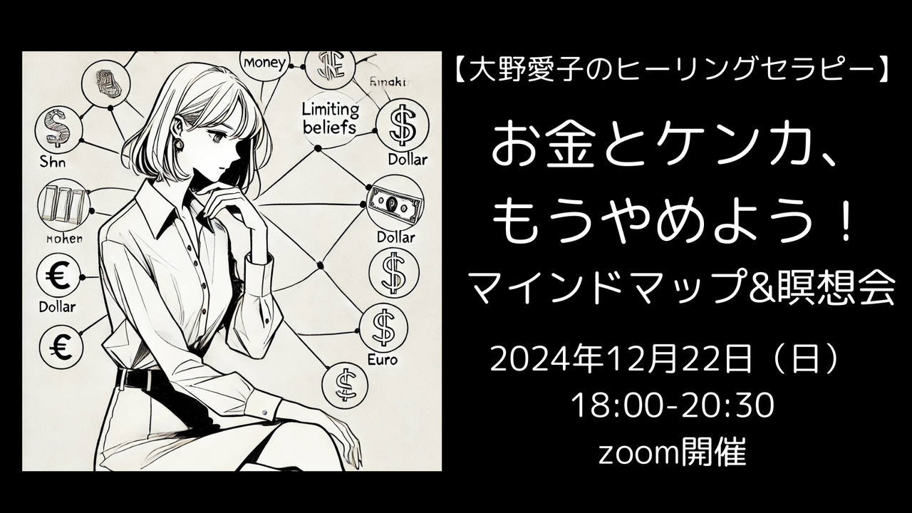 12月開催のオンラインワークショップのお知らせをさせていただきます。今回は「お金の心理×マインドマップ×瞑想会」という、年末にふさわしいスペシャルな内容にしました!
